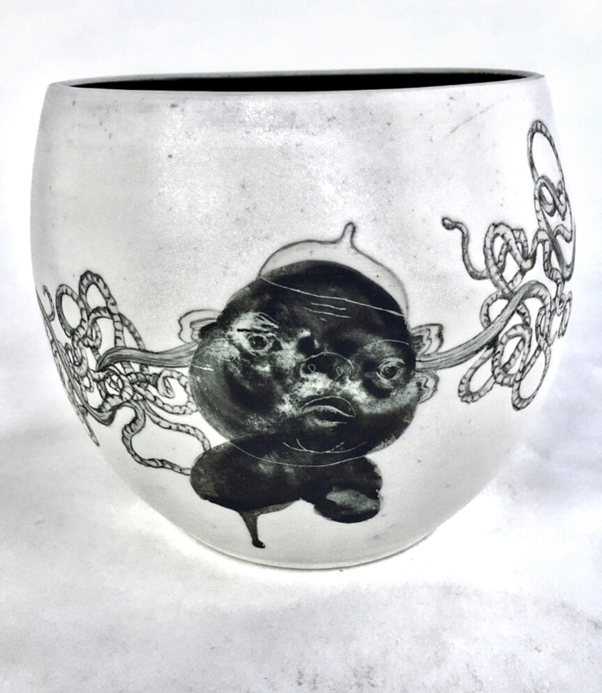9 1/2 inches tall, 7 inches in diameter. 2016.